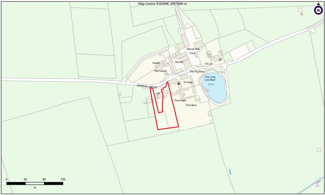 The property has a rear garden/field area which can be accessed via the property driveway or a separate driveway to the west of the property. In all around 0.74 acres.